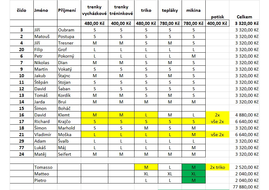 Platbu za oblečení prosím na na účet klubu 210007200/0300